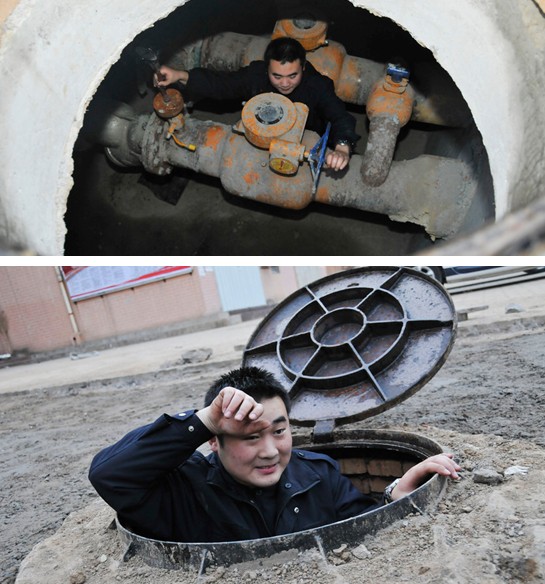 簡單的午餐過后,胡站長開始了閥門井的巡視工作。當(dāng)掀開位于濟(jì)陽大街的主管道井蓋時,一股熱浪襲來。“井內(nèi)溫度達(dá)到46度,到這里面就如同洗桑拿浴”胡站長開玩笑說。等他從6米多深的管道井中上來時,一頭的汗水。大的管道井雖然熱,但是內(nèi)部空間比較大,維修保養(yǎng)還比較容易,眾多小區(qū)開發(fā)商自行建設(shè)的小管道井才是工作中的挑戰(zhàn),空間狹小,工作人員只能用特殊地體位更換閥門。