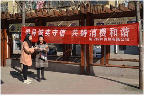 2019年3月15日上午,濟(jì)寧四和供熱有限公司客服部宣傳小隊(duì)前往吉祥社區(qū),開展以“倡導(dǎo)誠實(shí)守信 共鑄消費(fèi)和諧”為主題的宣傳活動(dòng),為百姓進(jìn)行義務(wù)宣傳。