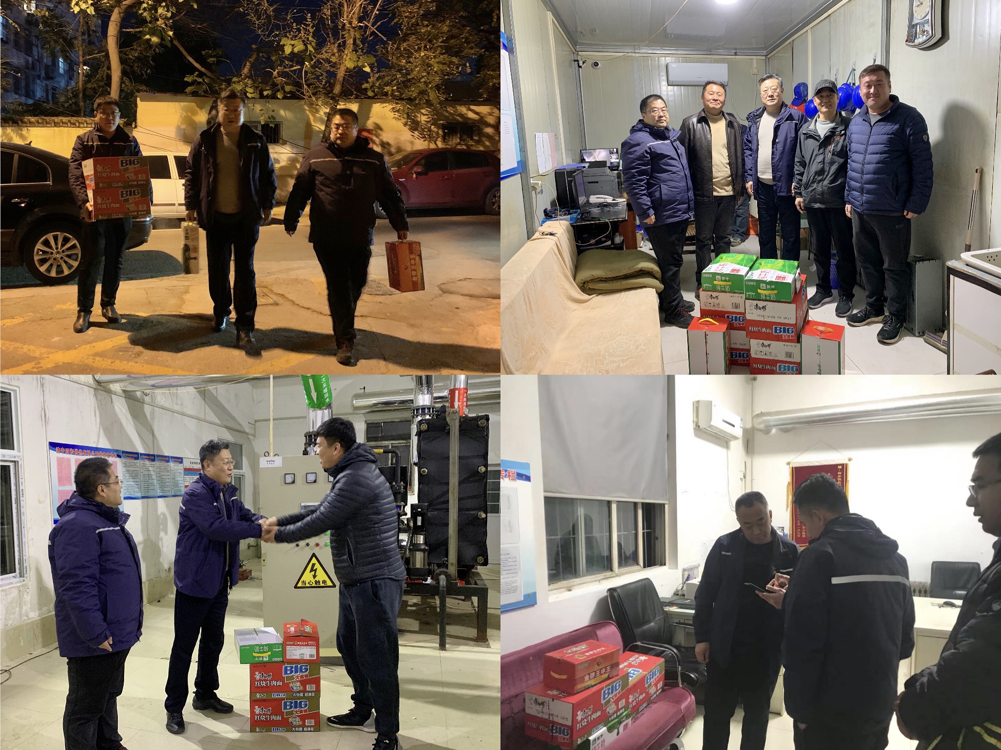 11月9日晚8:00,濟(jì)寧四和供熱有限公司黨支部書記、董事長李聲播,黨支部副書記、總經(jīng)理張璟帶隊(duì)分赴轄區(qū)8個(gè)供熱管理所,探望慰問連日來始終奮戰(zhàn)在供熱服務(wù)第一線的供熱人,為他們送去企業(yè)的關(guān)懷和溫暖。